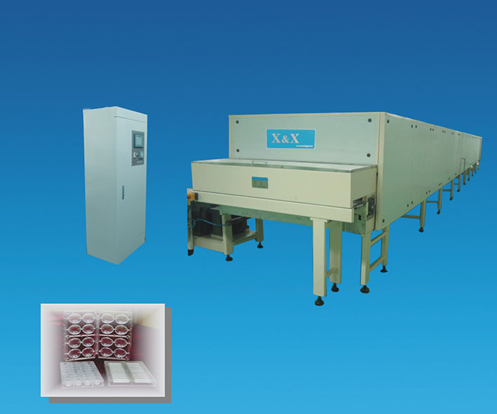 ●配置PC巧克力印模烘模输送机,使PC巧克力印模加热达到浇注工艺要求,返回运行形成周而复至循环生产功能。、