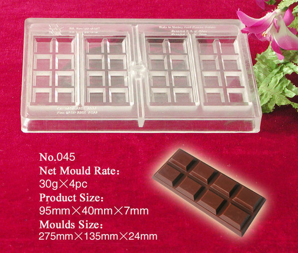 PC系列巧克力印模系热固塑型工艺生产的产品,具有表面光泽,抗冲耐温性能良好,产品在外界-10℃~100℃温差范畴内,保证产品品质不变