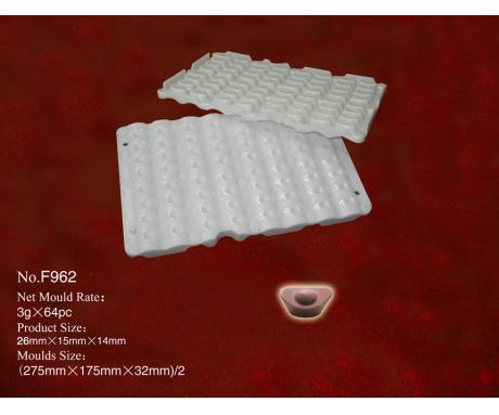产品名称:No.962 所属类别:复合F系列印模 产品规格:非标规格 产品重量:3g 包装规格:26块/箱 操作视频: