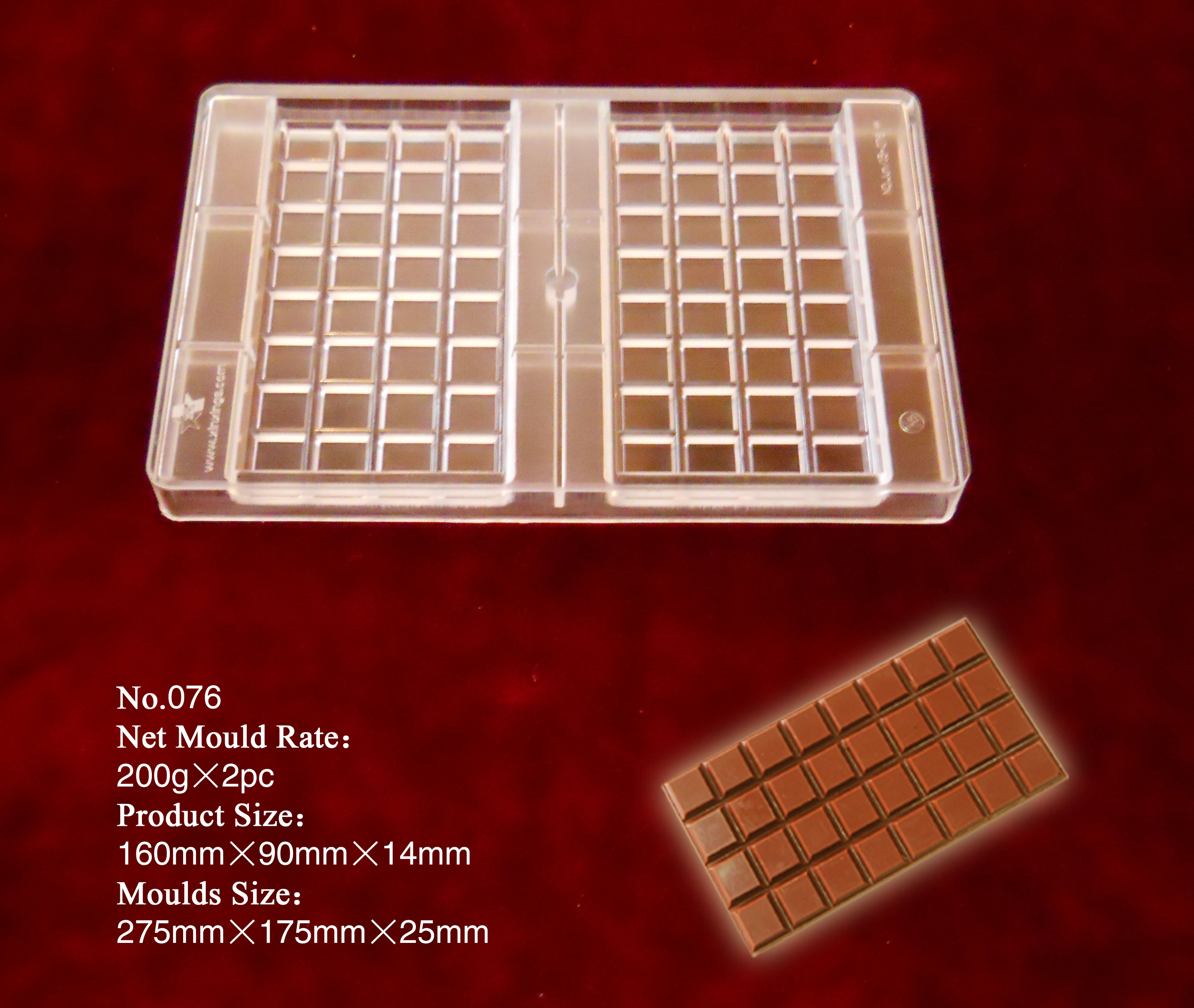 PC系列巧克力印模系热固塑型工艺生产的产品,具有表面光泽,抗冲耐温性能良好,产品在外界-10℃~100℃温差范畴内,保证产品品质不变,
