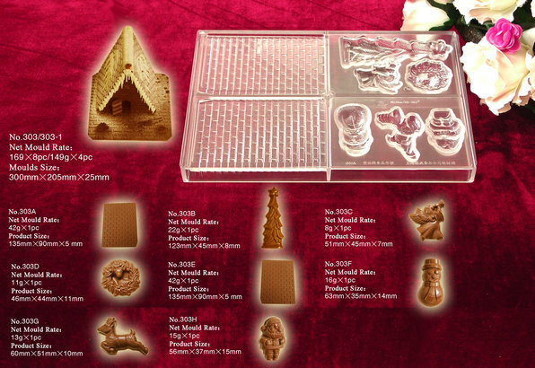 PC系列巧克力印模系热固塑型工艺生产的产品,具有表面光泽,抗冲耐温性能良好,产品在外界-10℃~100℃温差范畴内,保证产品品质不变,