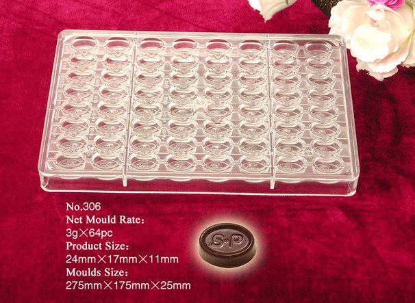 PC系列巧克力印模系热固塑型工艺生产的产品,具有表面光泽,抗冲耐温性能良好,产品在外界-10℃~100℃温差范畴内,保证产品品质不变,