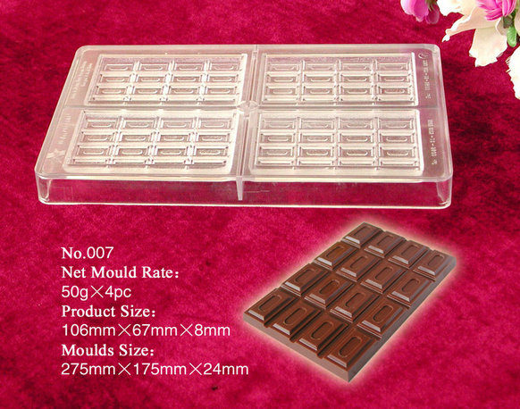 PC系列巧克力印模系热固塑型工艺生产的产品,具有表面光泽,抗冲耐温性能良好,产品在外界-10℃~100℃温差范畴内,保证产品品质不变,