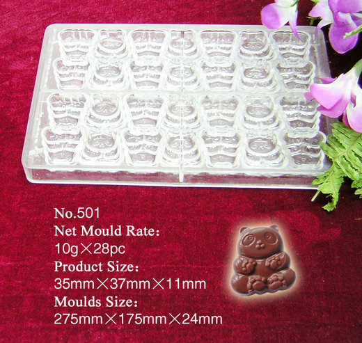 PC系列巧克力印模系热固塑型工艺生产的产品,具有表面光泽,抗冲耐温性能良好,产品在外界-10℃~100℃温差范畴内,保证产品品质不变,