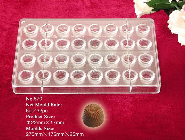 PC系列巧克力印模系热固塑型工艺生产的产品,具有表面光泽,抗冲耐温性能良好,产品在外界-10℃~100℃温差范畴内,保证产品品质不变