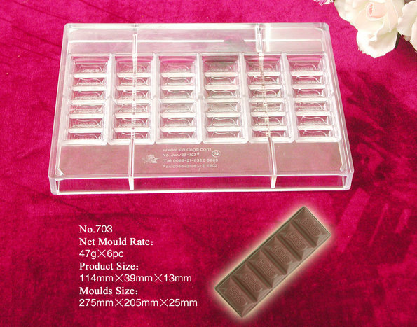PC系列巧克力印模系热固塑型工艺生产的产品,具有表面光泽,抗冲耐温性能良好,产品在外界-10℃~100℃温差范畴内,保证产品品质不变