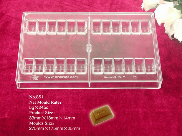 PC系列巧克力印模系热固塑型工艺生产的产品,具有表面光泽,抗冲耐温性能良好,产品在外界-10℃~100℃温差范畴内,保证产品品质不变,