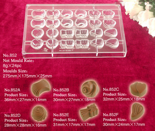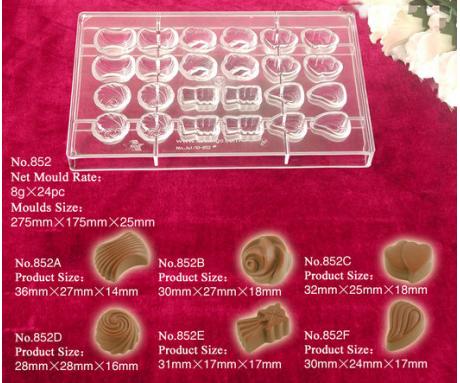 PC系列巧克力印模系热固塑型工艺生产的产品,具有表面光泽,抗冲耐温性能良好,产品在外界-10℃~100℃温差范畴内,保证产品品质不变